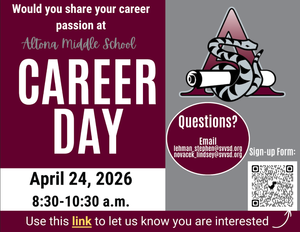 We are still in need of a few more parents who are willing to share their career passion at Altona’s annual Career Day event! Please sign up here.